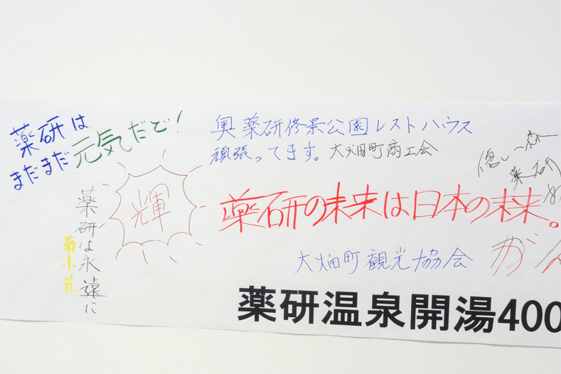 昨年の12月26日にリリースした、イカす大畑カダル団の長岡俊成さんによる「グランピング体験「Yagen Grand Snow」薬研の未来に灯りをともす」。クラウドファンディングの期間も残すところあと7日となりました! 今回の応援メッセージは、イカす大畑カダル団とともに、ふるさとの未来に灯りをともすために取り組んでいる、「薬研温泉開湯400年祭実行委員会」の皆さんです!熱い応援メッセージを垂れ幕にビッチリ書いてもらいました! たくさんの皆様のご支援により、目標金額を達成しているところですが、26日までご支援は受け付けています! 地域を挙げて応援しているイカす大畑カダル団のプロジェクトに、引き続きご支援よろしくお願いします!