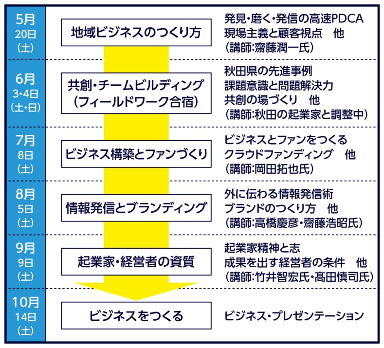 地域の魅力を発見し、発見した魅力を資源とし、地域ビジネスを構築する力を養うスクールです。