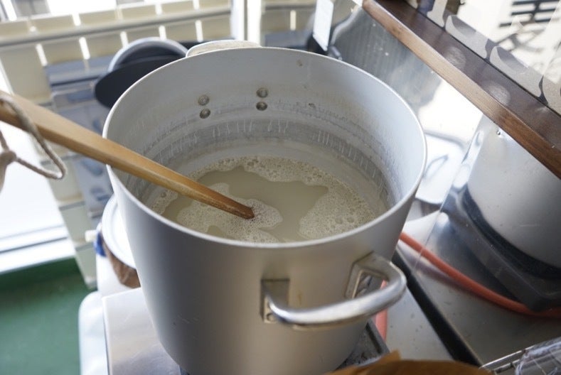 温度を上げてホップを投入。苦味を加えます。