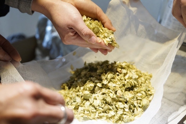 香りづけのホップを加えます。