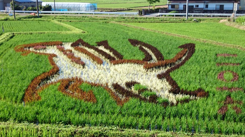 田んぼアートの背景のお米