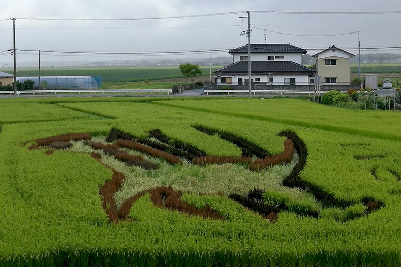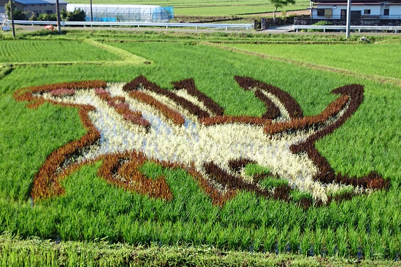 田んぼアートが完成しました! 夜にはプロジェクションマッピングでお祝いします!