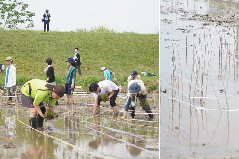 たのしいイベント当日。みんなで田植えしてごはんを食べて。