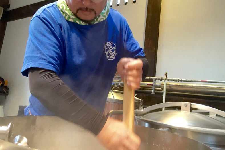 ご存知のとおり、ビールは麦芽が主原料です。このうち数割程度を田んぼアート彩米(雑穀)でつくります。彩米を粉砕(案外これがたいへん!)して、おかゆにしておいたものを、原材料に混ぜていきます。