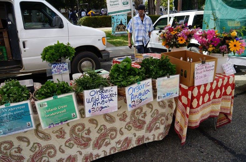ファーマーズマーケットは、生産者が消費者に新鮮な採れたて野菜を直売します。
