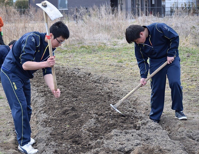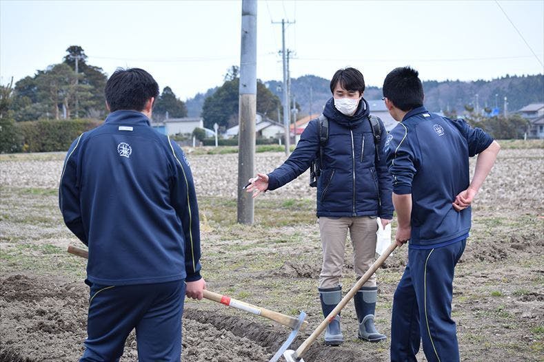 地域の農家さんに休耕中の畑を借り、さらに植え付けの指導も受けながら野菜を栽培しています。