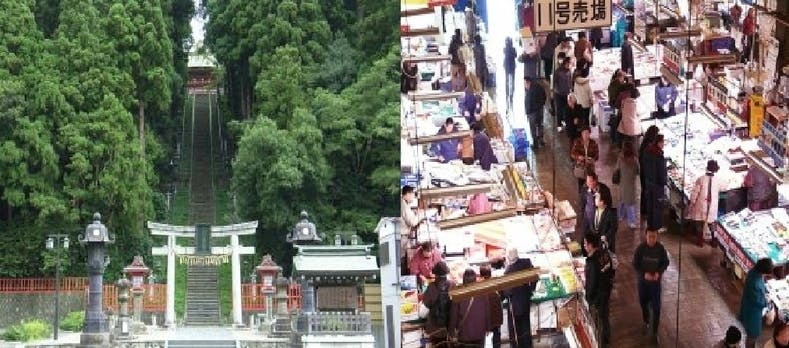 塩竈市は宮城県のほぼ中央、仙台市と日本三景で知られる松島との中間に位置しています。奥州一の宮鹽竈神社の門前町として、またみなとまちとして栄えてきました。古くは、陸奥の国府多賀城への荷揚げ港として、藩政時代には伊達藩の港として、明治以降は国内有数の港湾都市として、また、近代になってからは近海・遠洋漁業の基地としても発展してきました。「日本一の鮮マグロの水揚げ港」に代表されるように、新鮮な魚介類が豊富にあり港町独特の食文化がつくられています。すし店の数も多く、水産加工業も盛んで、笹かまぼこ、揚げかまぼこなどの水産練り製品など、日本有数の生産量を誇るものが数多くあります。