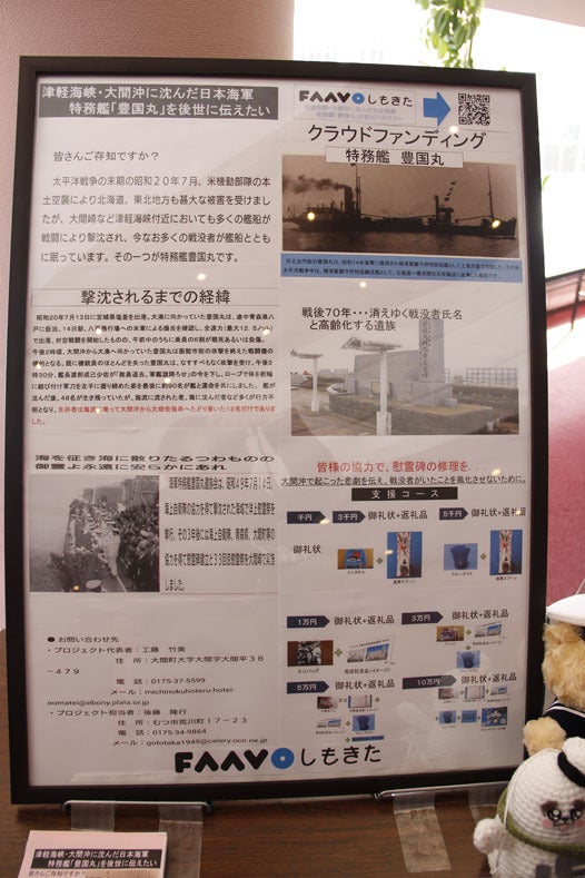 大間町で旅館を営む工藤竹美さんによる【津軽海峡・大間沖に沈んだ旧日本海軍特務艦「豊国丸」を後世に伝えたい】プロジェクトが先日始まりました。 私は海上自衛隊大湊地方総監部OBで現在は公益財団法人水交会大湊支部 大湊水交会副会長を勤めている後藤隆行と申します。 私も工藤さんと同じく下北の出身ではありませんが、先人への慰霊をし続ける工藤さんの気持ちを応援したいと思って、大湊水交会の有志一同で毎年慰霊を続けています。 皆様のご支援 よろしくお願いします!