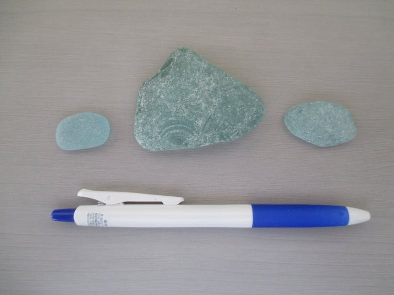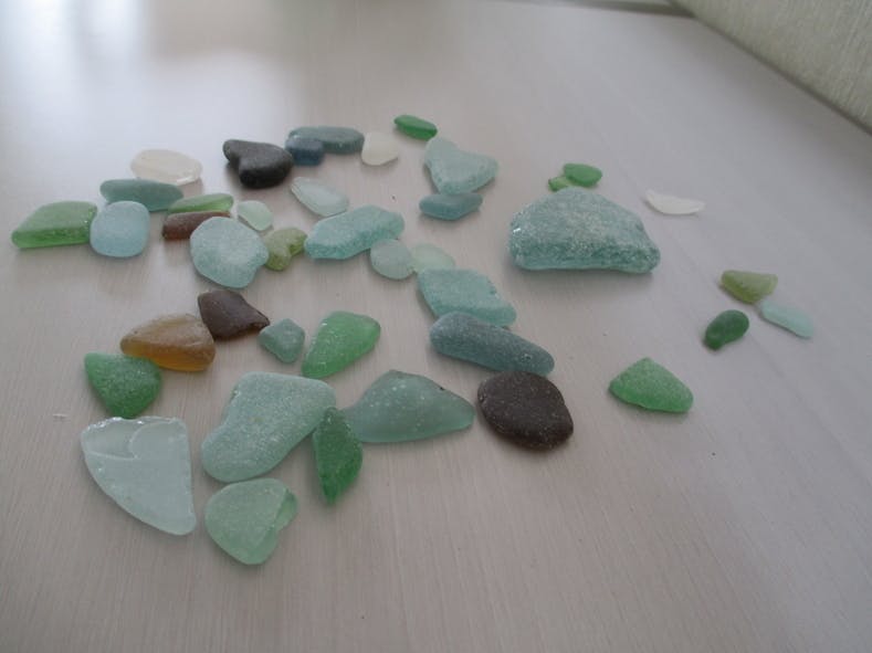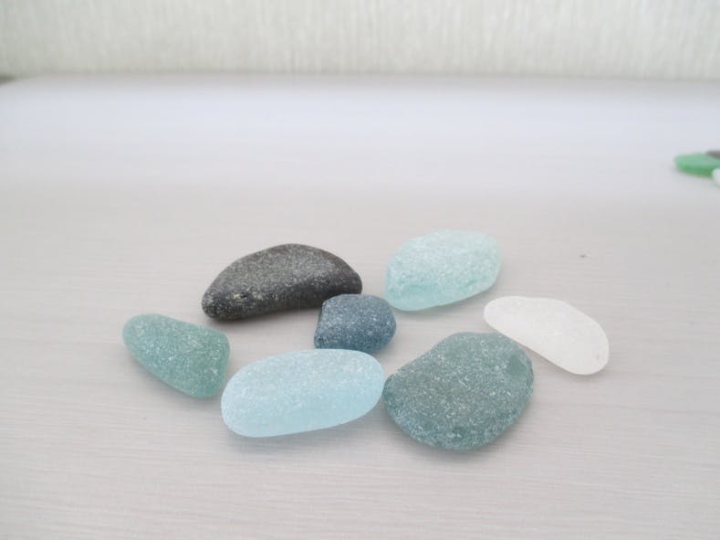 様々な色のシーグラスがありますが、あくまで原料は飲物のビンなどガラス製品の破片なのでそれらによく用いられる緑や白・茶色のものがよく見つかります。