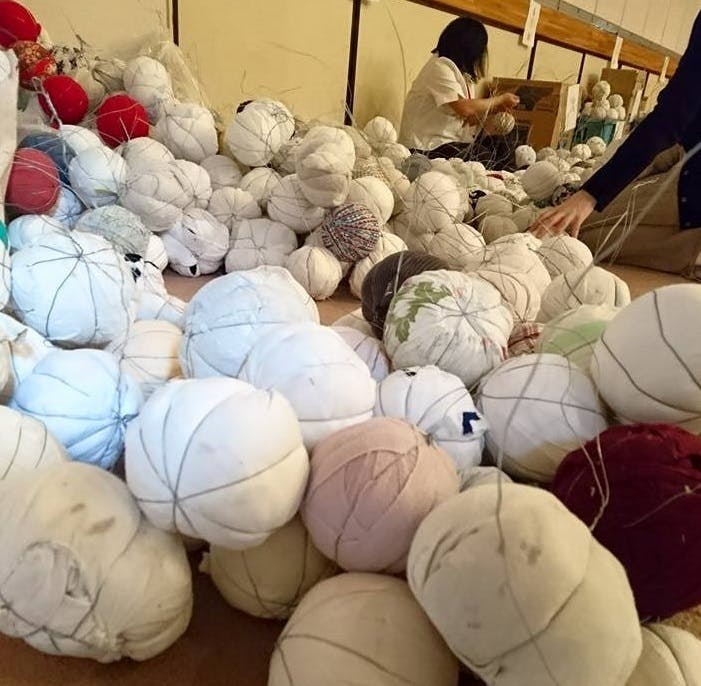 まと火に使うダンポ(まと火玉)は、合川地区住民総参加のもとに全世帯で作られており、大小・色、様々なダンポが家々から約2,000個集まります。