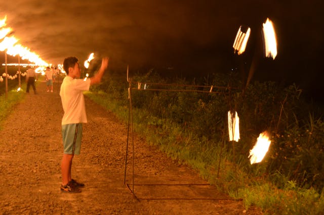 まと火の設置や火付け等は、「合川まと火保存会」の皆様に指導して頂きながら合川地区の中学生男子が担当し、まつりの中の「通り踊り」は、婦人会や子ども会、地域住民の方々と一緒に、合川地区の女子中学生が浴衣をまとい踊るのが通例です。