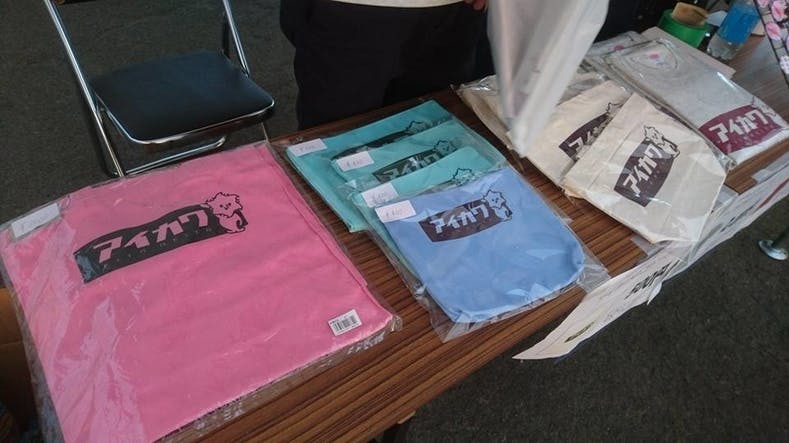 財源が乏しい本行事。なんとか資金集めをし、さらに祭りを盛り上げたいということで、メーカーさんになんとか安値でと頭を下げ下げグッズを製作し、販売してみるという試みでした。