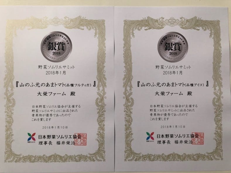 ▲日本野菜ソムリエ協会主催 野菜ソムリエサミット 銀賞受賞