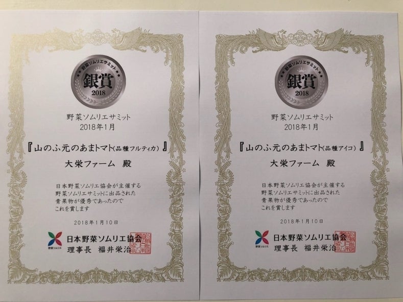 2018年1月 日本野菜ソムリエ協会主催 野菜ソムリエサミット 銀賞受賞