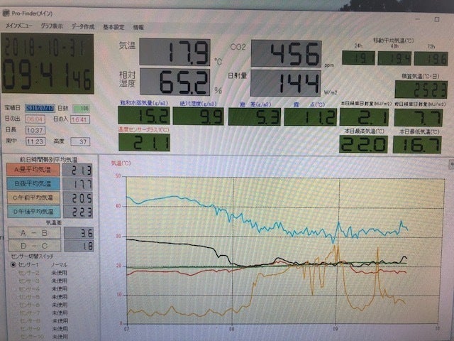 そこで出会ったのが株式会社誠和さんの『プロファインダー』という環境測定装置。これは栽培にかかせない環境要素を1分ごとに測定し、それをパソコン上で確認することができます。そういった環境データを基に、ハウス内環境の状態およびその変化を見て問題点や解決策を見つけることができます。