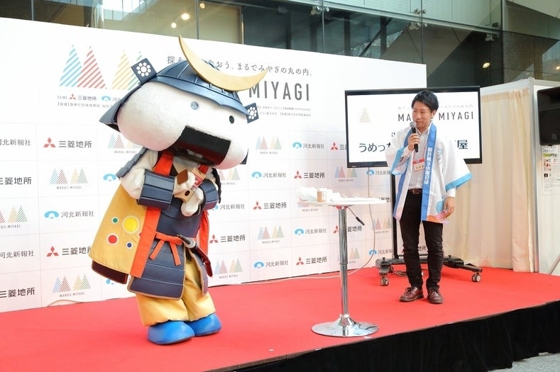 仙台・宮城県観光PRキャラクターのむすび丸も応援にかけつけてくれ