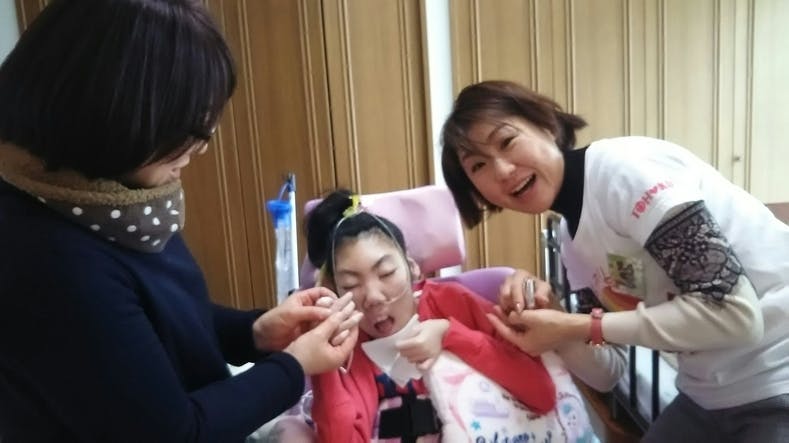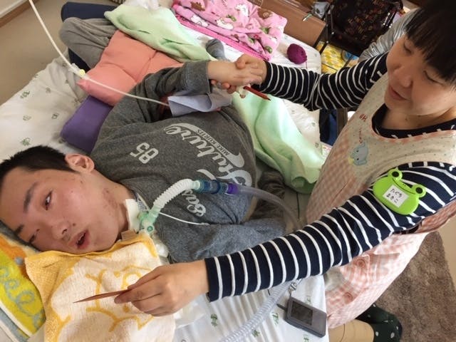 重症心身障がい児者のみんなは、自分で動くことができなかったり、言葉での表現ができなかったりする方たちがほとんどです。また、呼吸が不十分で呼吸器をつけていたり、飲み込む力が弱くチューブから栄養を取っていたりと、医療的ケアが必要なケースが多いです。