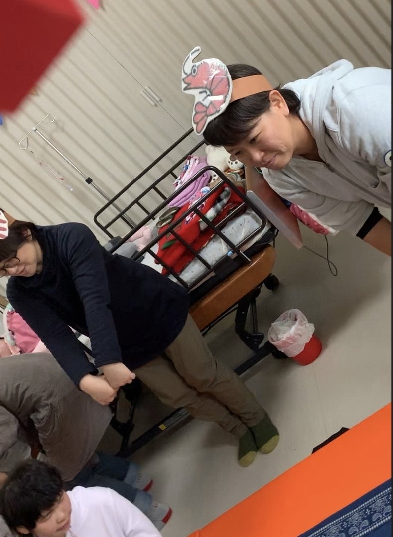 今日の午前中の活動は、体を動かそう!でした^_^理学療法士さんがいろいろ準備してきてくれて、最後はみんなでエビカニックスを踊りました!
