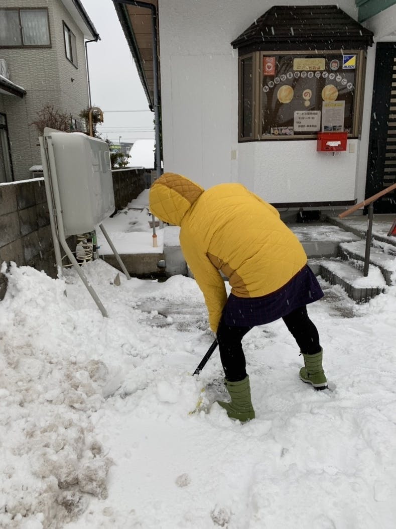 年末年始のお休みに積もった雪をスタッフが頑張ってよーいしょ!