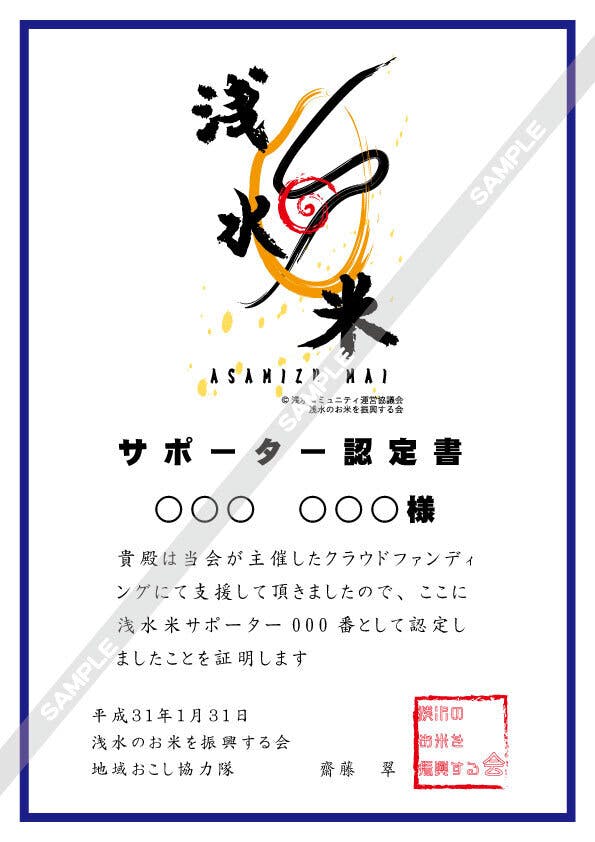 1.浅水米サポーター認定書