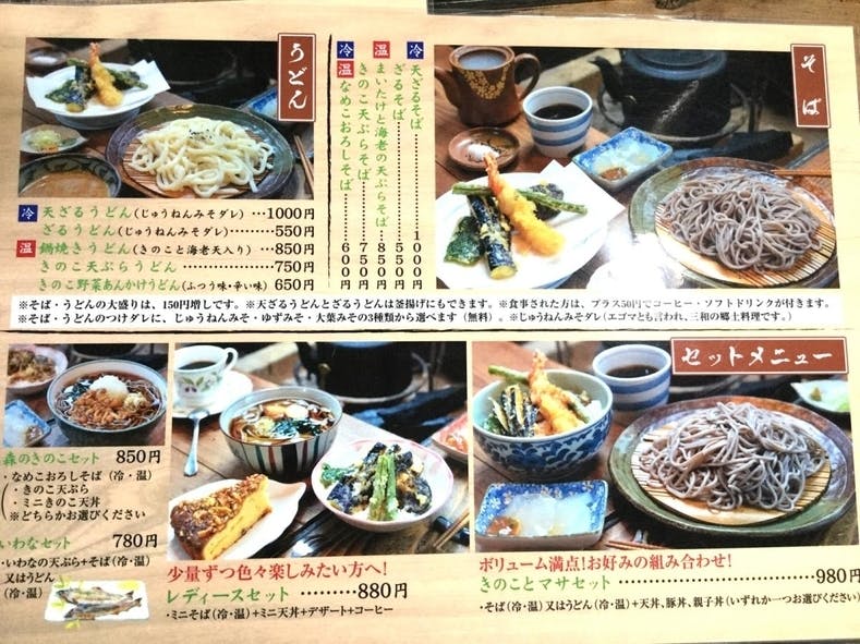 平成17年オープン。そば、うどんを中心に定食、丼などのメニューがあります。サイドメニューなどで季節の食材を使った料理も提供しています。ランチ時は地元の人や輸送業などのドライバーさんなどで賑わいます。休日はツーリングライダーや家族連れなども訪れてくれます。一見、山小屋風の外観も三和の自然の中に溶け込み、落ち着いたたたずまいを見せてくれます。店でも季節のイベントを開催しているので、みなさまお越しくださいね。