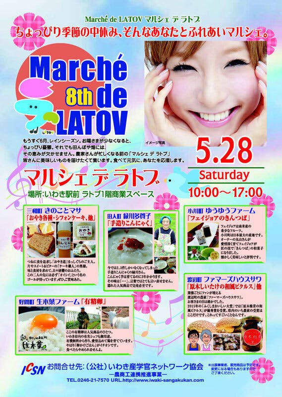 また、いわき駅前の商業商業施設「ラトブ」においては2年間にわたり「マルシェ・デ・ラトブ」のメンバーとして出店。重ねるごとに多くのリピーターも増え、「おやき」「手作りケーキ」「お惣菜」など販売商品はつねに完売していました。こんなに理解のあるお客様に囲まれたいへんうれしく思います。やはり「美味しかったから、また買いに来た」といわれるのが一番です。今は定期的に草木台の直売所「田舎んぼ」でも対面販売をしています。