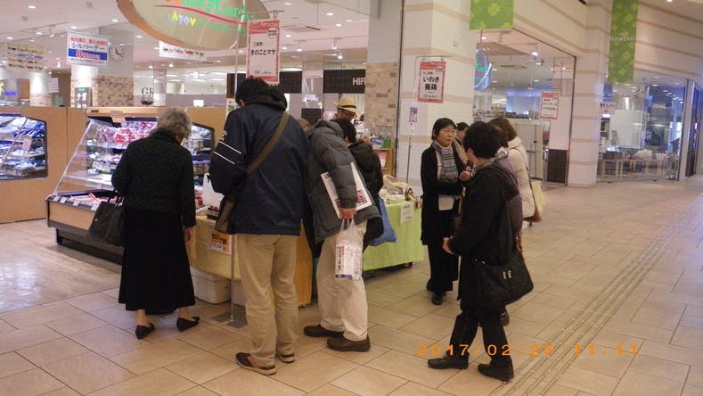 東日本大震災から、もうすぐ8年。福島県産品はいまだ風評から脱しきれていません。安全・安心なふくしまの食材・加工品のPRのため、「きのことマサ」は(一社)いわき観光まちづくりビューローの会員としても活動しています。いわき市主催の物産展やイベントをはじめ、多くのイベントに参加、オリジナルの加工品販売を通じていわき食材の安心・安全をPRしています。