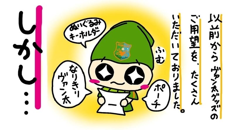 実は以前から、ヴァン太くんグッズ販売要望のお問い合わせはたくさんありました。(なりきりヴァン太・ヴァン太ぬいぐるみ・ヴァン太ポーチ・ヴァン太ぬいぐるみキーホルダーなどなど)