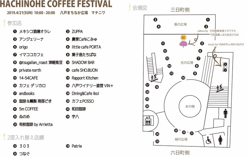 ※菓子造たちばな、津軽焦豆、和田珈琲、cafeSHO.BUON、南部どき、Dining&Cafe ikoi、Rapport Kitchen、アンジェリーナは15:30までの出店です