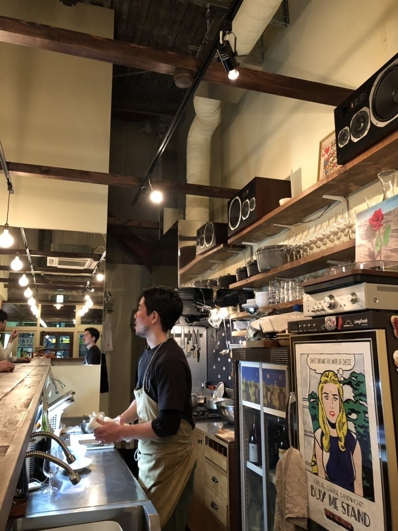 ナチュラルワインと季節感あふれる料理が自慢のお店。店主もイケメンです。