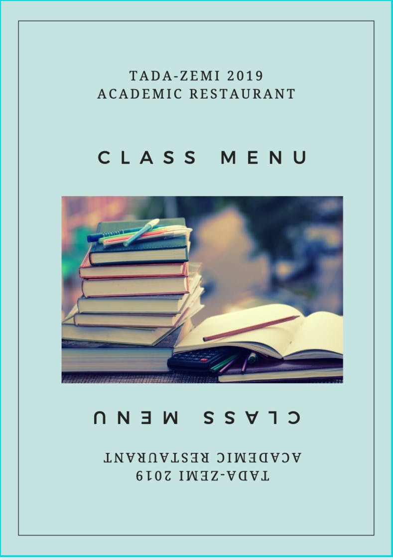 ↑レストランのメニューを模した授業・講師紹介パンフレット(当日配布予定)