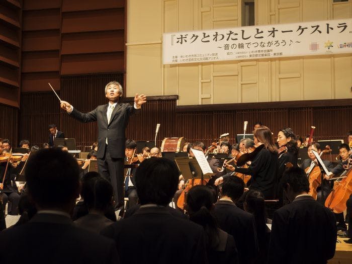 『ボクとわたしとオーケストラ』は、東日本大震災後の2012年2月に、いわき市内全域の小中学生を対象に開催したオーケストラ公演としてスタートしました。以降毎年開催し、これまでに延べ約 23,000 名の子供たち をご招待しています。楽曲はドラゴンクエスト序曲やスターウォーズなどを演奏するほか、合唱曲『ビリーブ』で子供たちと共演致しました。子供たちには、オーケストラが奏でる生演奏の迫力と響きに触れ、音楽を通じて仲間と心がつながる素晴らしさを全身で感じてもらいたいと思います。