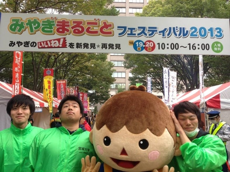 宮城は「食材王国みやぎ」と呼ばれ、海産物、お米、野菜などおいしいものの宝庫です。観光にいらした方や、転勤で仙台に来られた方たちに、「食べるものが本当においしいですね!」とよく言われます。一方で、地元に住む我々は、普段食べているものが、どんなにおいしいかを実はあまり意識していませんでした。そこで、宮城のおいしいものを多くの人にもっと知ってもらい、地域を盛り上げる活動をしようと、2013年に宮城大学食産業学部の学生たちと「みやぎ食の応援団」を立ち上げました。最初に集まった学生たちは震災の年に入学し、復興を支援したいという強い気持ちがありました。その中で、宮城まるごとフェスタで宮城のお米の食べ比べ、食肉祭りでの仙台牛のPR活動など地元の食材を知ってもらう活動を次々に行ってきました。