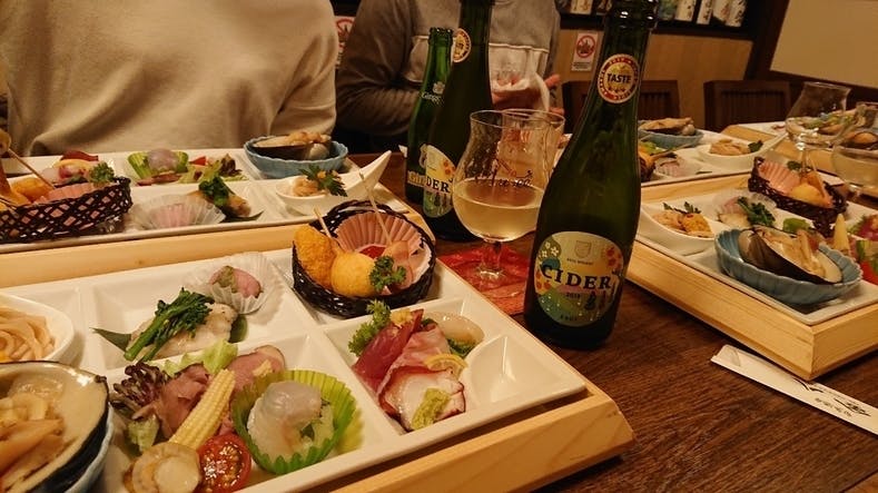 辛口のシードルがすっきりとした口当たりで食中酒としてよく合いました。