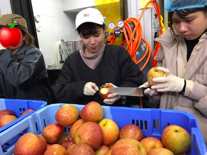 シードル作りで必要な【りんごの仕込み】のお手伝いをしました。