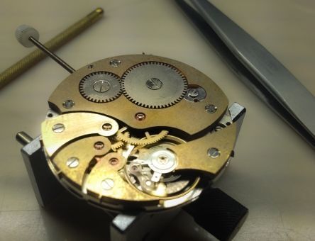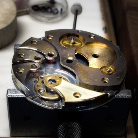 暑い中、集中して、仮組み、注油、簡易歩度測定、などしました。 画像ではありますが、テンプが動いている様子が分かりますでしょうか。 もう少し待ってください!必ずいいものを持ってきますので! かなりテンション上がってきてます!!