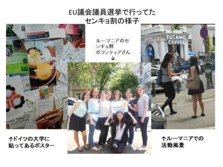 実は、今年5月に行われたEU議会議員選挙でも、ドイツとルーマニアの若者と共働でセンキョ割を実施しました。