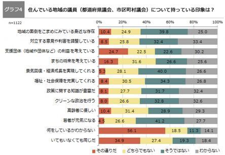 住んでいる地域の地方議員について持っている印象は?というリサーチですが、最多は56.1%で【何をしているかわからない】だったんです。