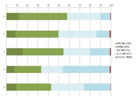 5か国中最も政治に関心があるのは1番の国で、「非常に関心がある」と「まあ関心がある」を足すと58%になります。