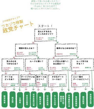 こんな政党チャートを作ってました。各政党の方々から怒られるかなと思ったら、結構笑ってくれました( *´艸`)