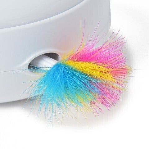 不規則に飛びだしたり引っ込んだりする羽根に猫ちゃんは夢中で遊ぶでしょう。