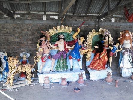 少し前まで現地の人たちは養蜂ではなく、マングローブの森で野生のミツバチの巣からはちみつを採っていました。森には世界最大のベンガルトラが生息しているため、はちみつを採りに行く人たちがトラに襲われることもよくあったようです。森に行く前にはトラに襲われないように、神々に祈ってから行くんだよ、と現地の長老が教えてくれました。その神々の写真を撮らせてもらいました。ひげの生えているのが男神、ひげのないのが女神のようです。