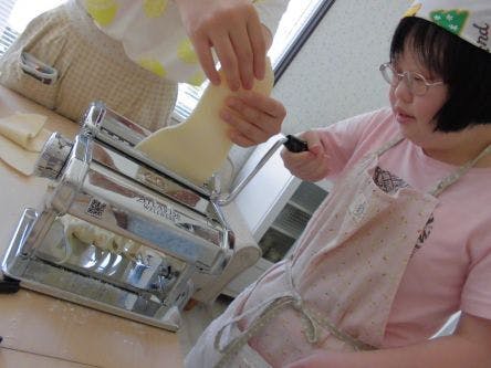 今回パスタマシン組と包丁組に分かれてうどんのカットをしました。