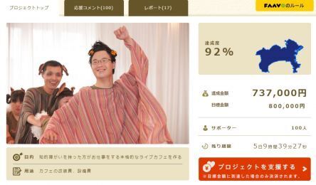 もしプロジェクト終了の20日までに80万円集まらなかったら、今まで集まった737,000円は全額返金となります。