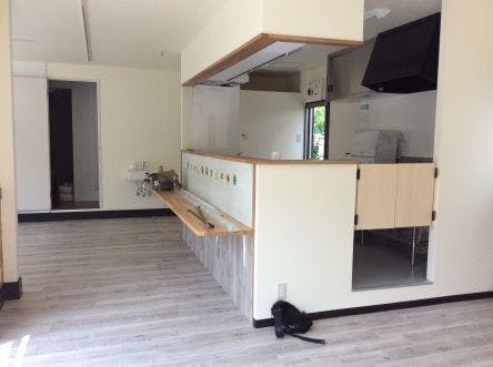 まだテーブルやイスなどは入れてませんが、かなり低めのカウンターや色合いなどイメージ通り!
