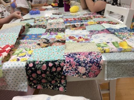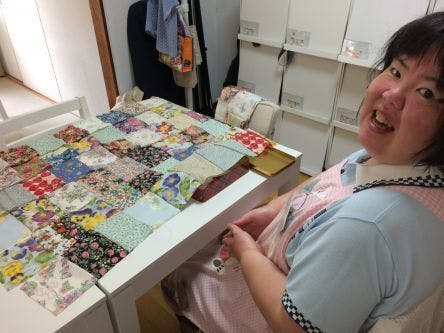 そして今、カフェで使おうと思っているパッチワークを、ふぇありーないんのいなみちゃんとゆきちゃんに作って貰っています。