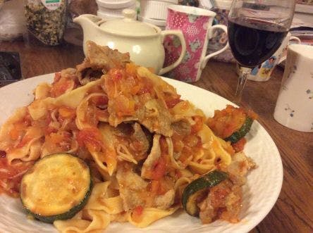農家さんから頂いたトマトを贅沢に使ってズッキーニのトマトフェットチーネ!