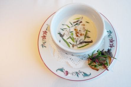 コンソメジュレをスープに忍ばせ、じゃがいもと
