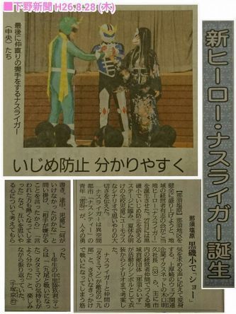 ナスライガーチームは小学校での公演もします!子供たちに友情の大切さ、相手を理解することの大切さなどを公演を通じて伝えています(^^) 黒磯小 稲村小 東原小 南小