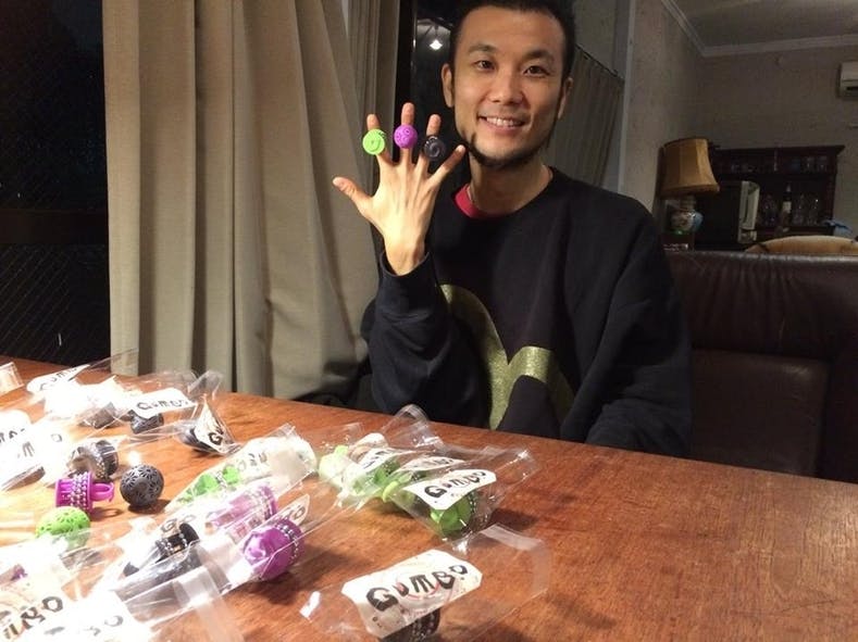 GUMBOプロジェクトの中で進めていたオリジナル楽器がやっとできました。手でGUMBOの「G」の形を作ってのポーズをするようになった夏のころ、「こういう形のパーカッションとかあったら面白いね」といったたわいもない会話から始まったこのプロジェクト。最初は「G」の形のシェーカーを3Dプリンターを使えば作れるかもと、「シェアたま」に暮らしているアクセサリーデザイナーのなかいちゃんに相談。シェーカーのほか、カバサや、太鼓やいろいろなパーカッション、大きさを検討し、最終的にはマラカスとカバサを指輪にすることに!製造価格を検証したり(3Dプリンターだと容積によって制作費が高くなることも判明)、サイズや、マラカスの中に入れる素材・カバサに巻くチェーンを何度も試し音を確認。完成までに試作すること4回。とてもキュートな「GUMBOオリジナル楽器」が生まれました。